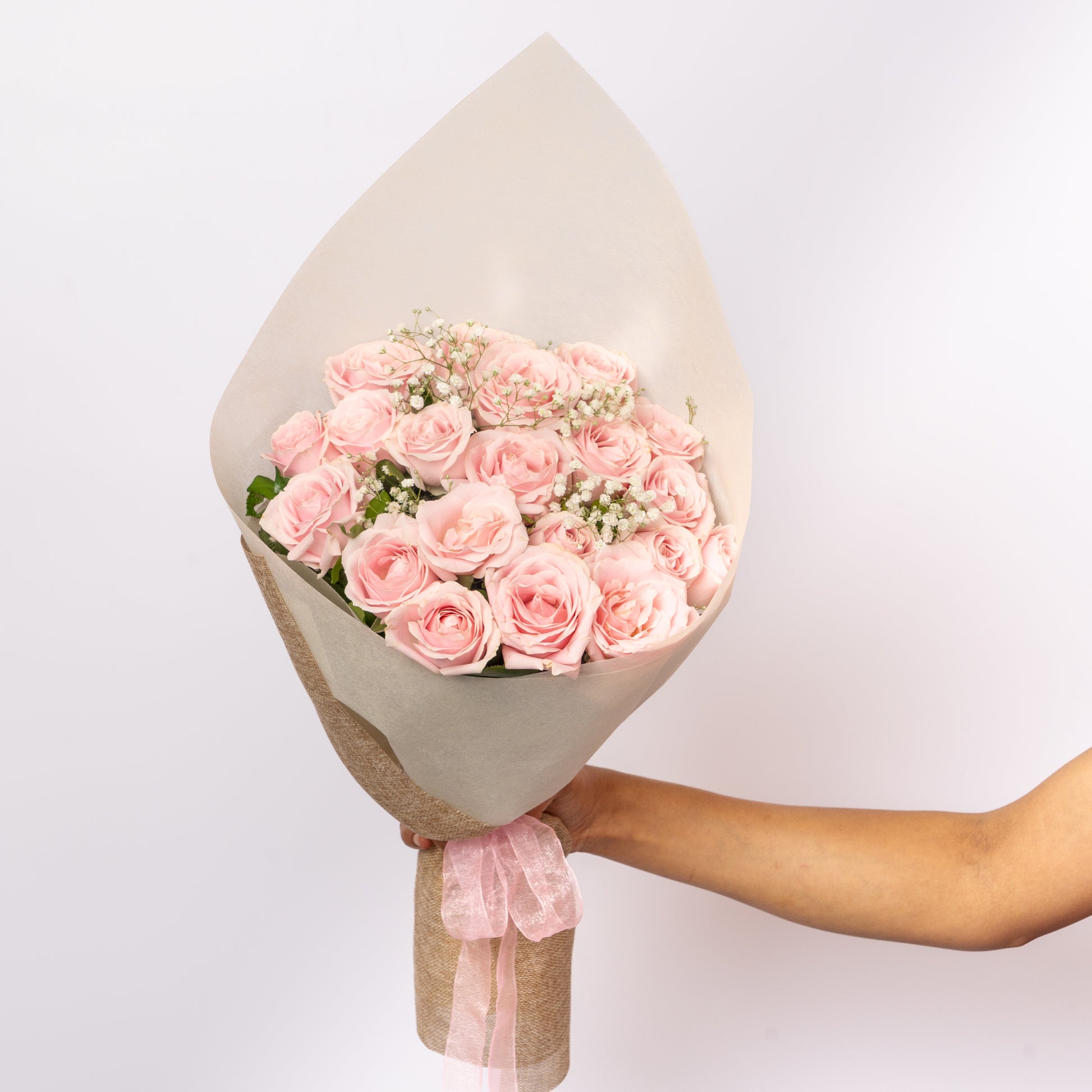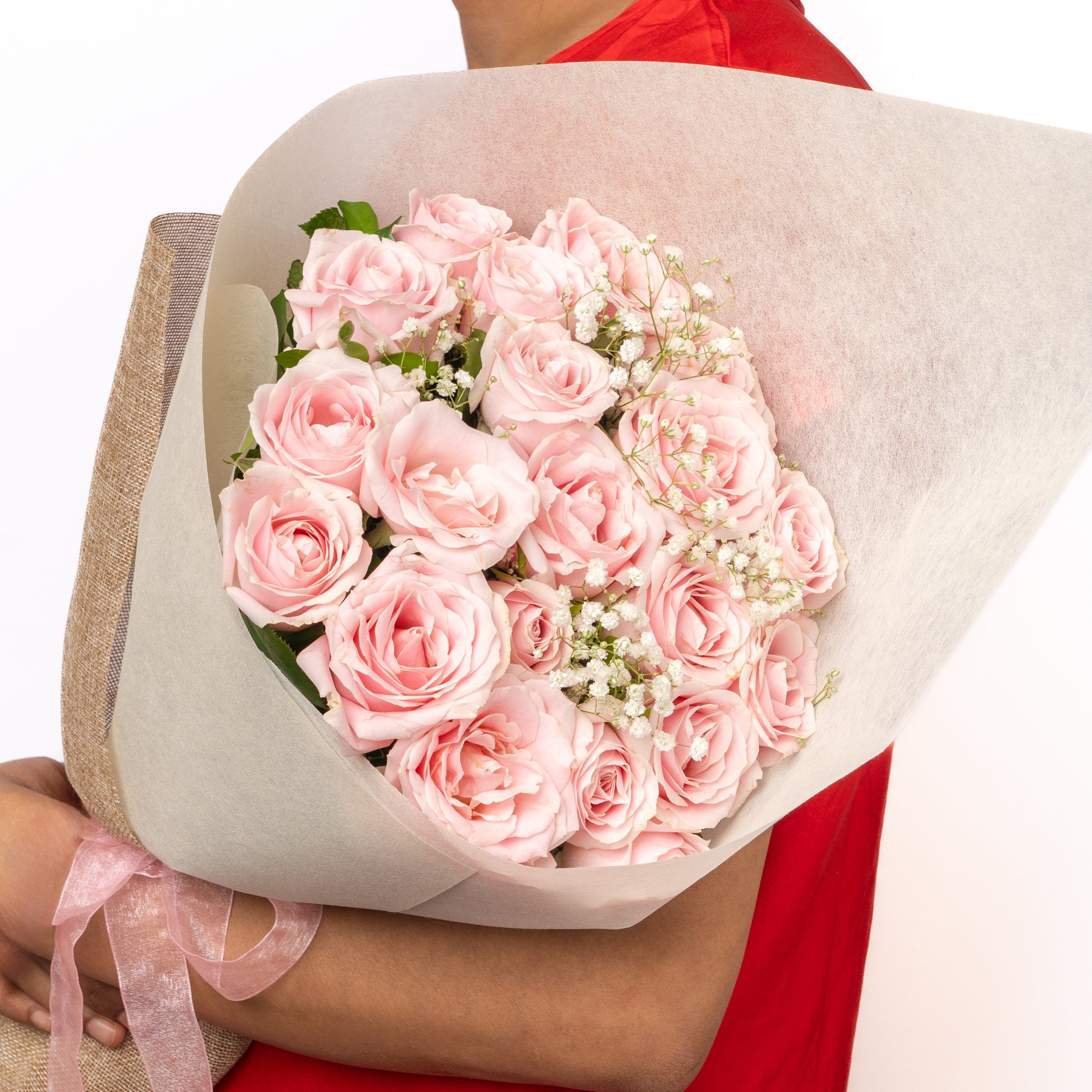 Celebrate the beautiful bond of Rakhi with our enchanting Pink Rose Bouquet with Green Leaves and White Gypsophila, paired with a charming Rakhi. This elegant combo set is designed to convey your love, joy, and heartfelt wishes to your beloved brother or sister-in-law on this special occasion.
